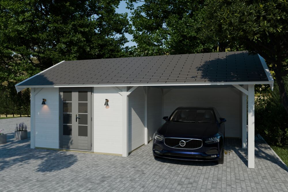 Eine Holzgarage von Lugarde ist die ideale Lösung, wenn Sie Wert auf Schutz, Stabilität und schönes Design legen. Durch die massive Bauweise und die hochwertigen Materialien entsteht ein sicherer und trockener Lagerplatz für Fahrzeuge, Werkzeuge oder Fahrräder. Jede Holzgarage lässt sich im 3D Konfigurator vollständig anpassen, zum Beispiel mit separatem Abstellraum, großen Fensterflächen oder isolierten Wänden.